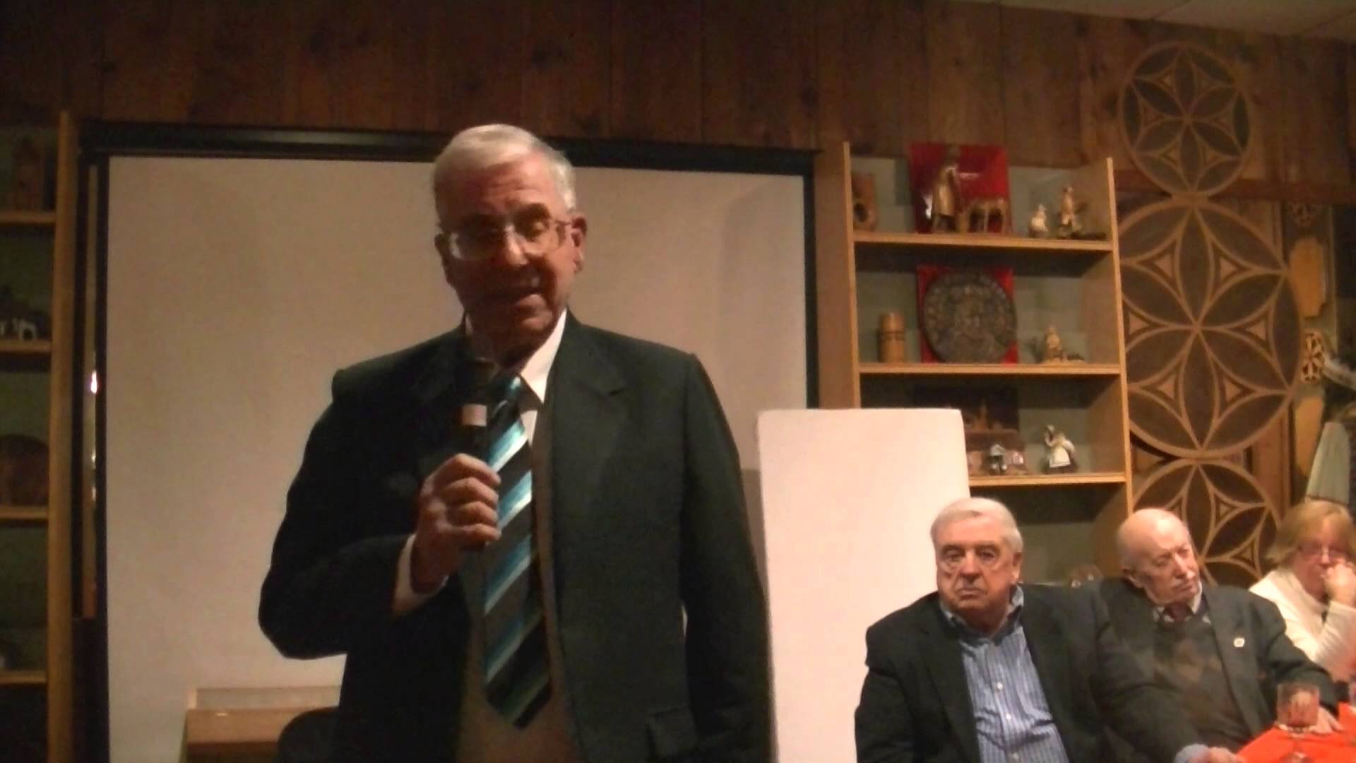 Description: A man standing in front of a crowd of people holding a microphone in his hand and a microphone in his other hand.