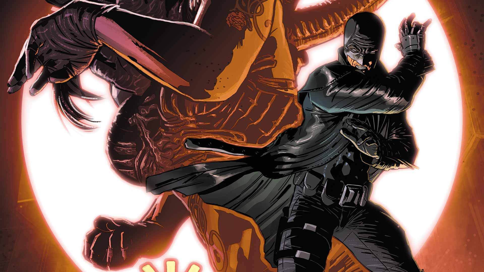 Description: A man in a black outfit standing next to a demon in a full moon background with a demon on his back.