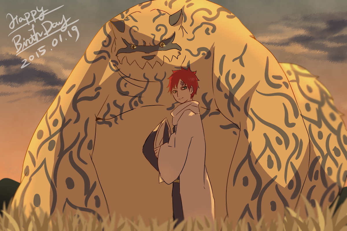 Description: A man standing in front of a giant dinosaur in a field of grass with a sky background and writing on it.