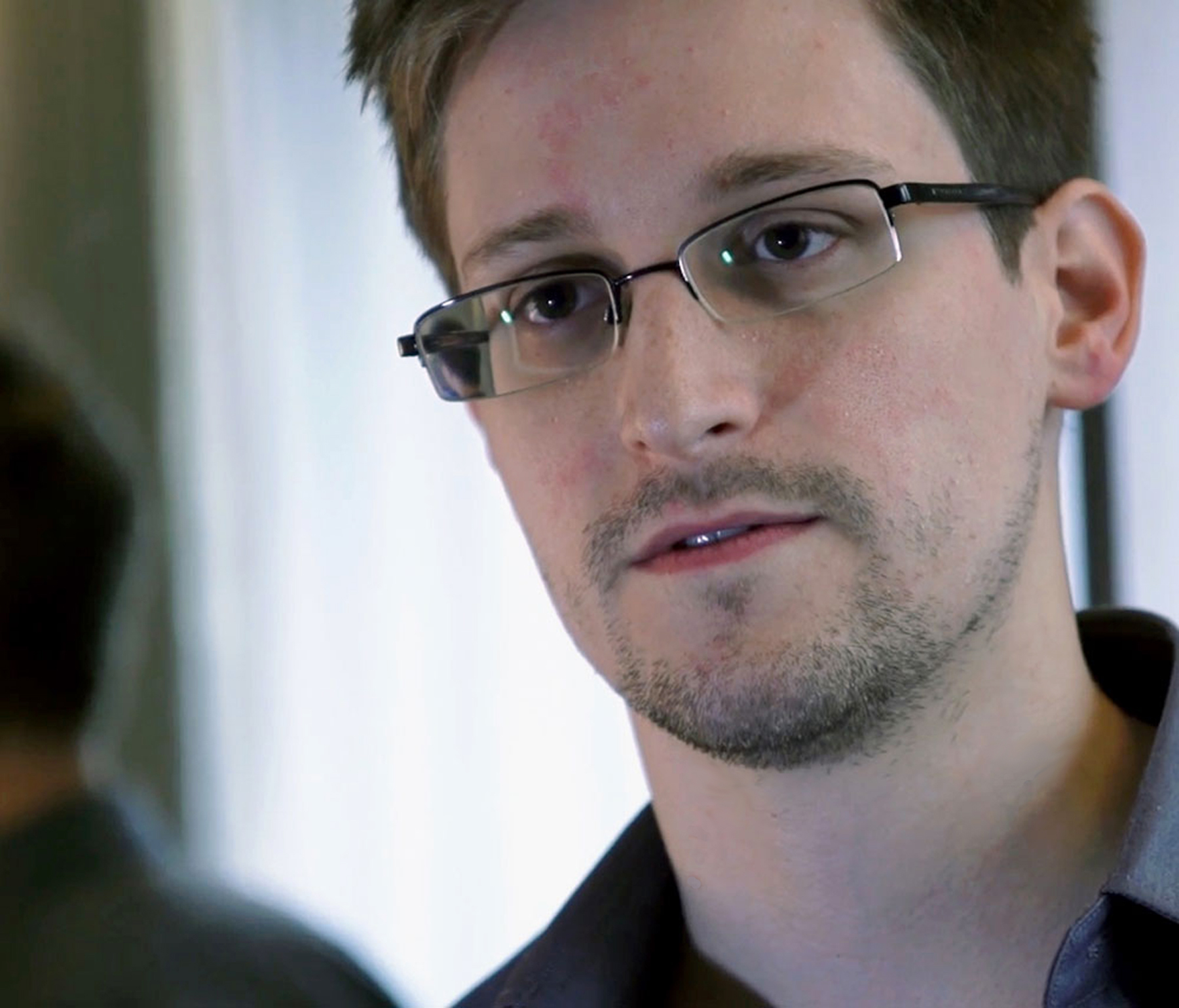 Description: A man with glasses is staring at the camera while wearing a black shirt and tie and a black shirt.