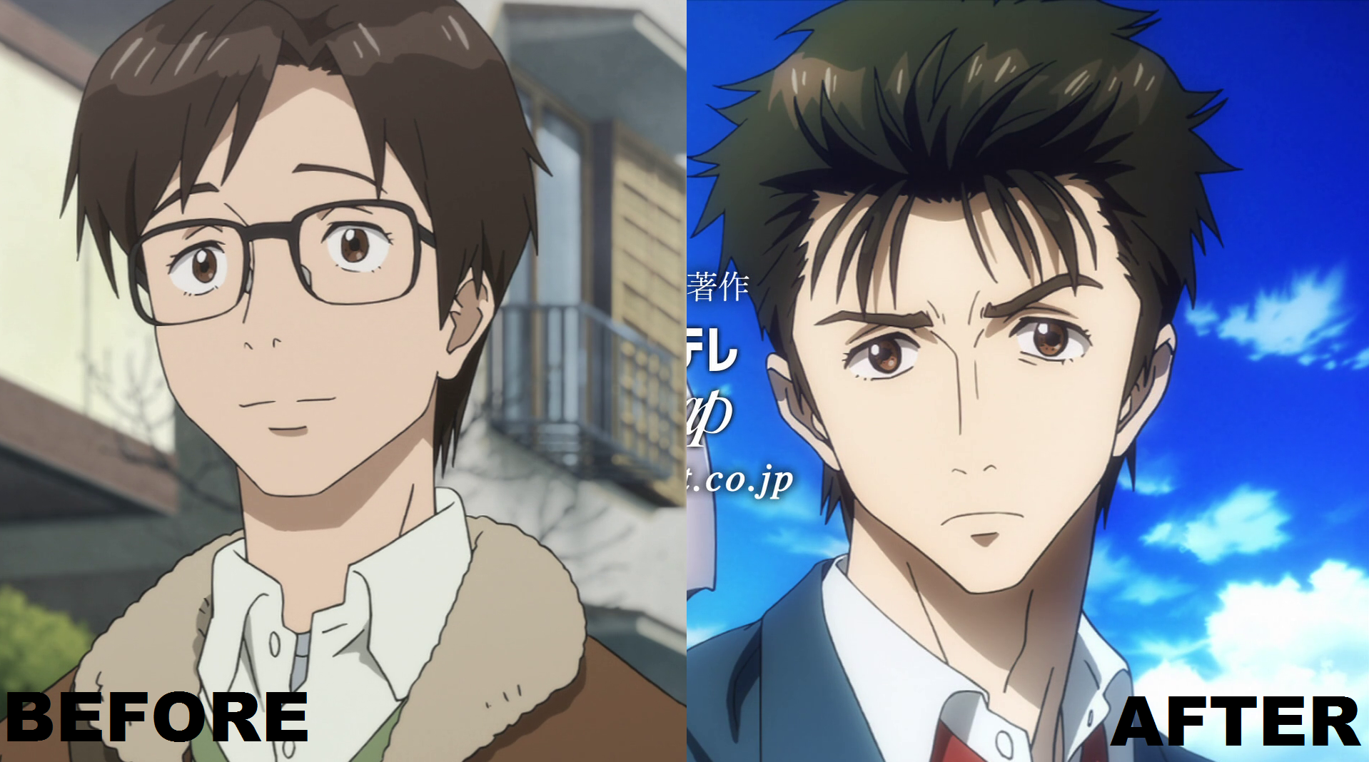 Description: A man with glasses and a tie next to another man with glasses and a tie in front of a building.