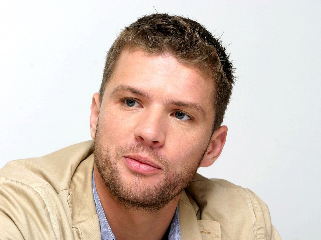 Description: A man with a goatee and a shirt on posing for a picture with his hand on his chin.