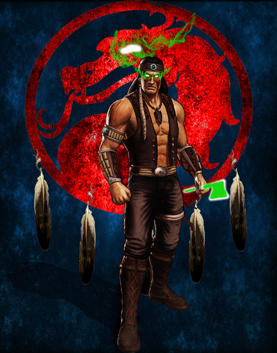 Description: A man with a green eye and a red background with a dragon on it and a red circle with a red background.