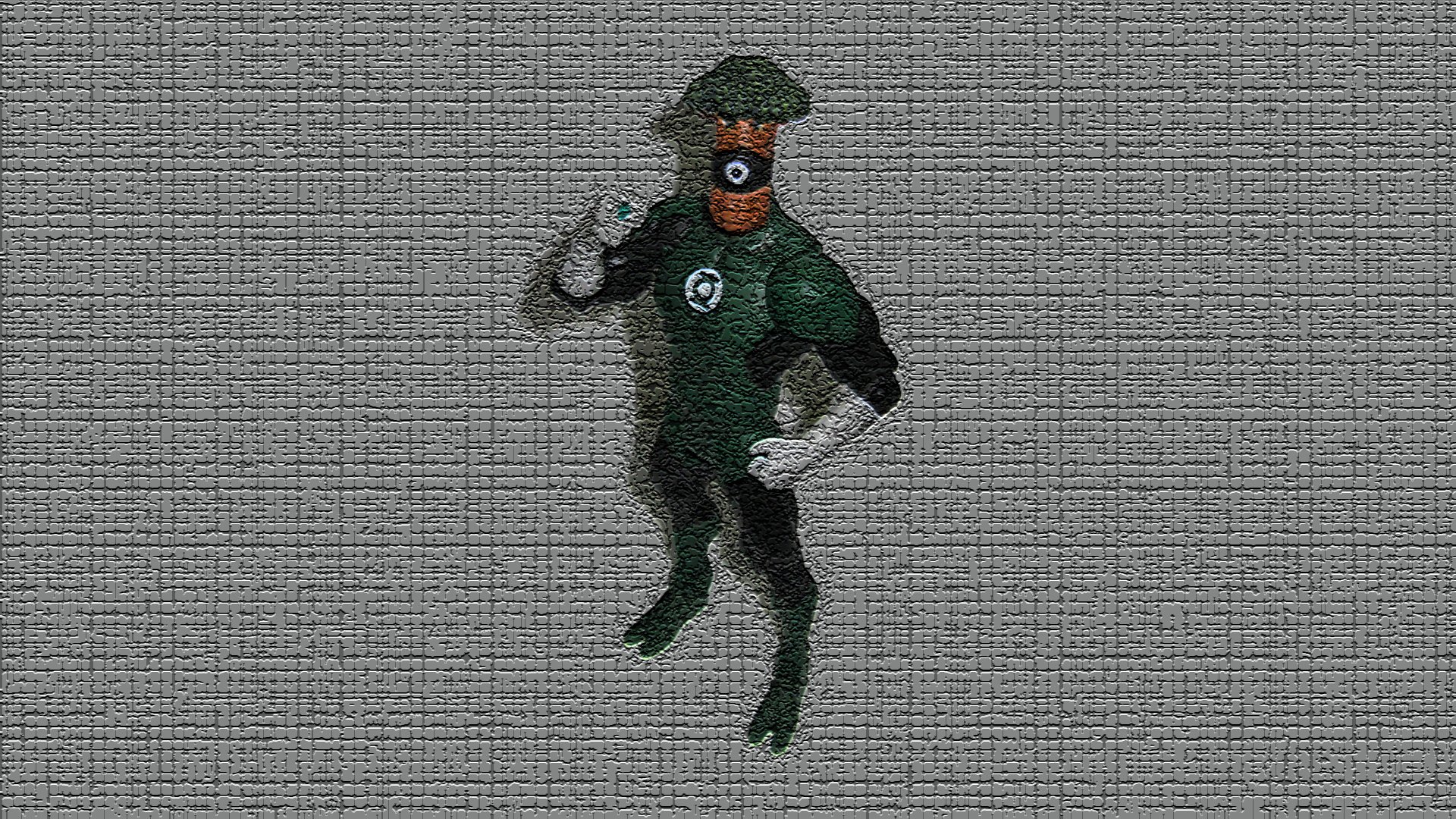 Description: A man in a green suit and hat is running with a baseball bat in his hand and a baseball in his other hand.