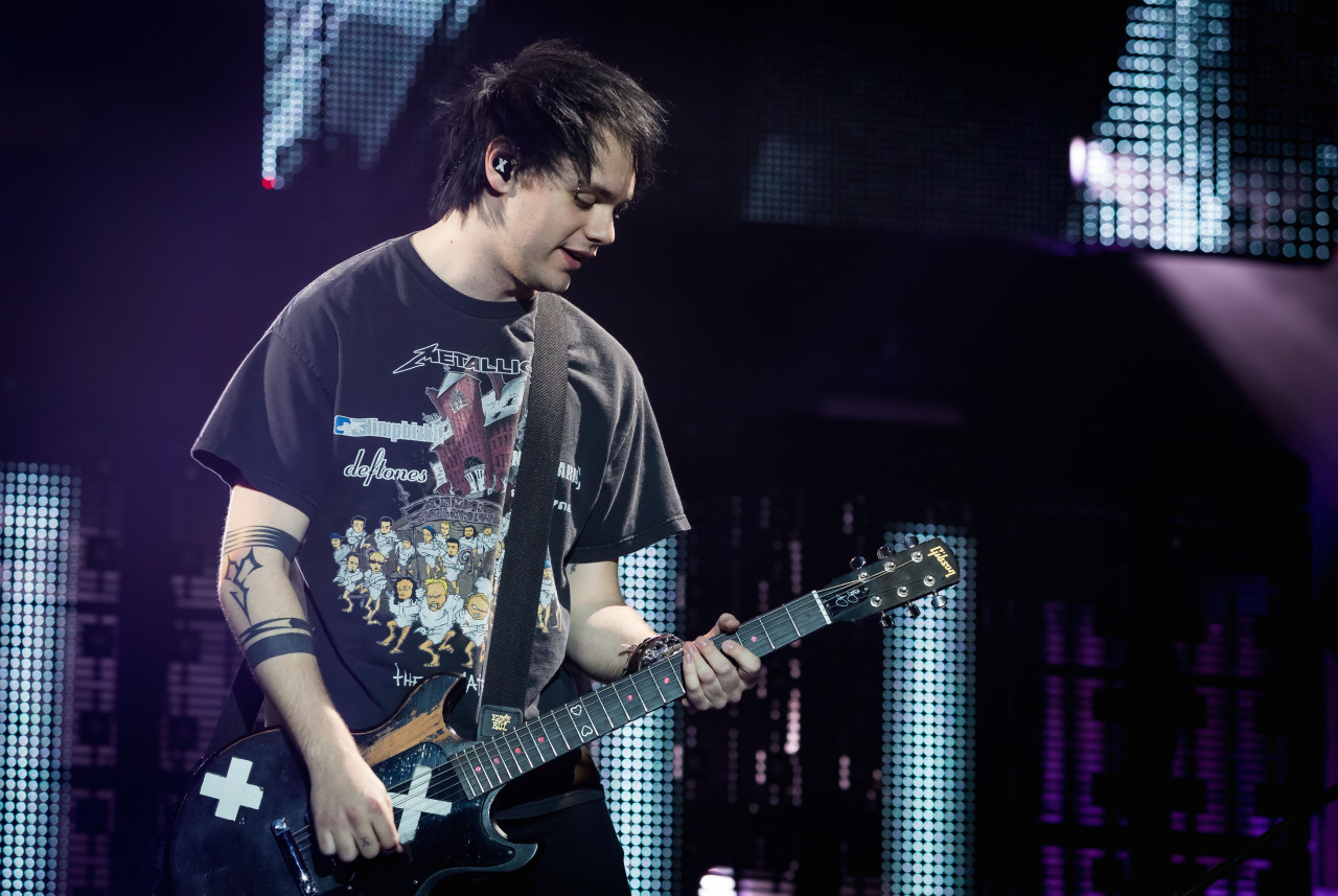 Description: A man with a guitar in his hand on stage with a microphone in his hand and a microphone in his other hand.