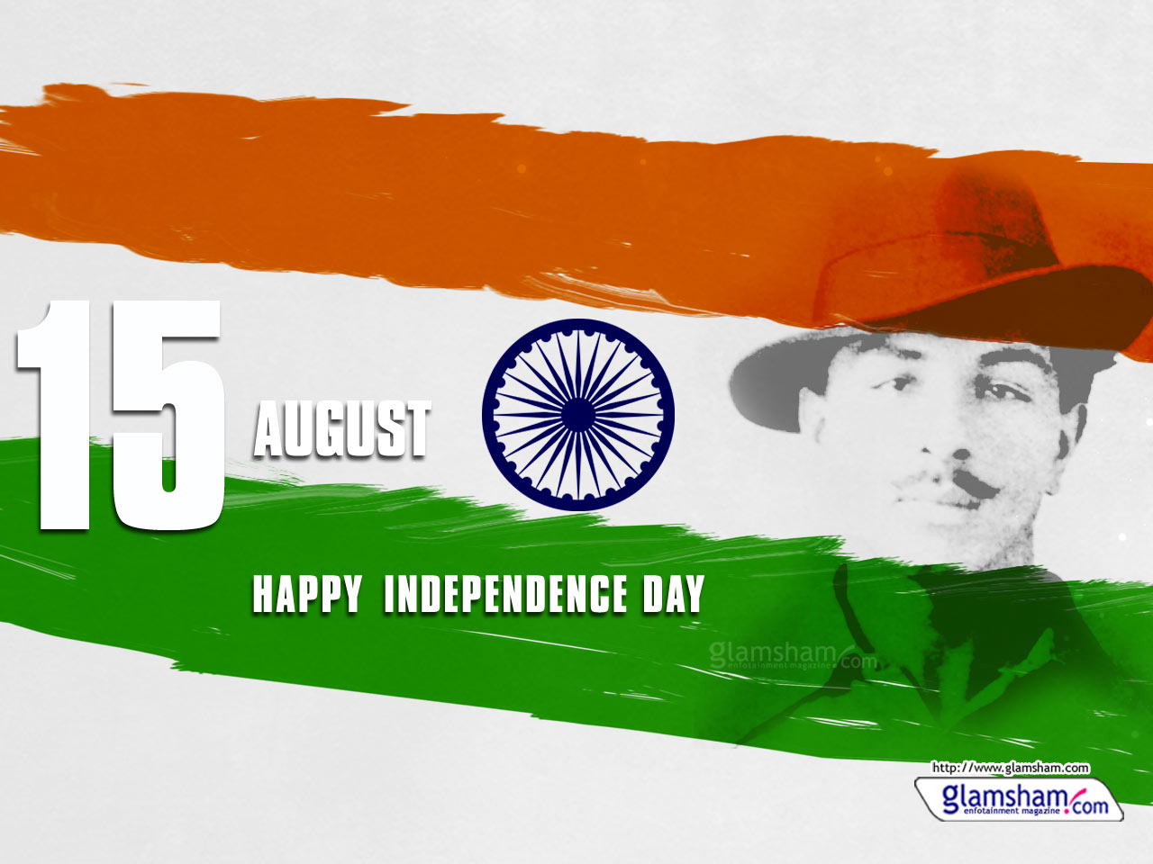 Description: A man wearing a hat and a flag with the words happy independence day written on it in white and green.