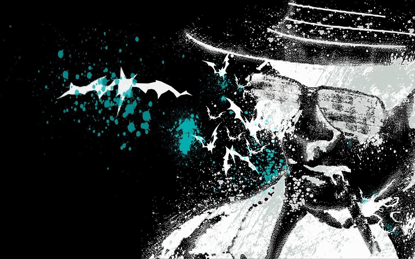 Description: A man with a hat and glasses in a black and white photo with a bat on it's side.