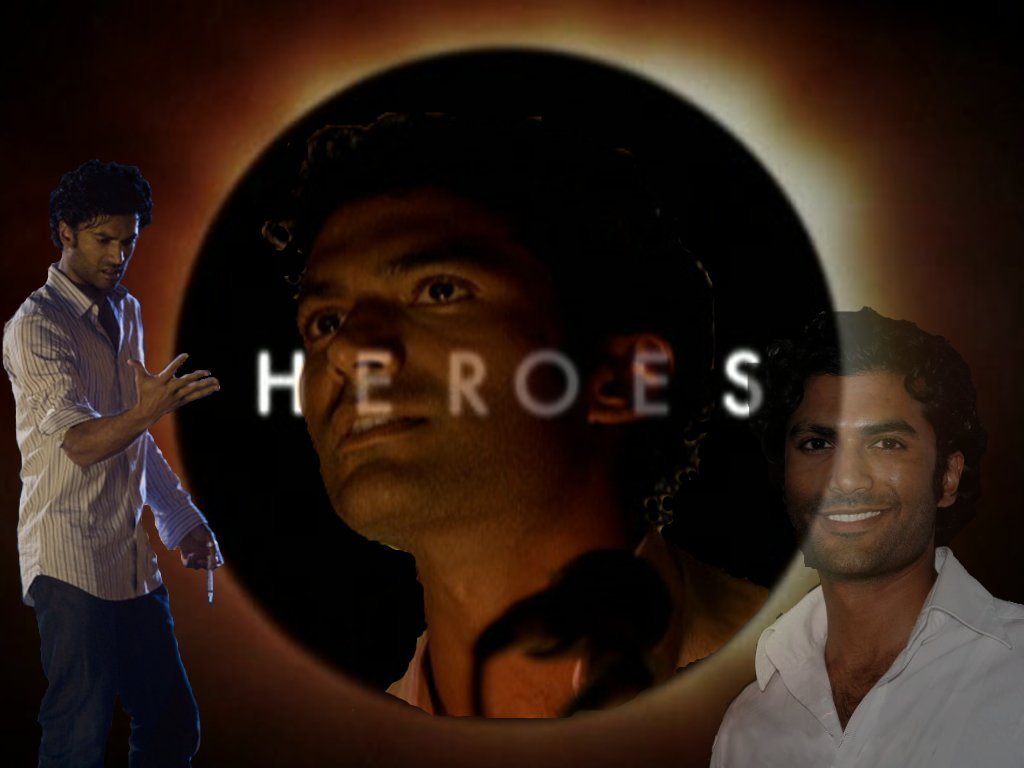 Description: A man standing next to a man with a hat on and a movie poster behind him that says hero.