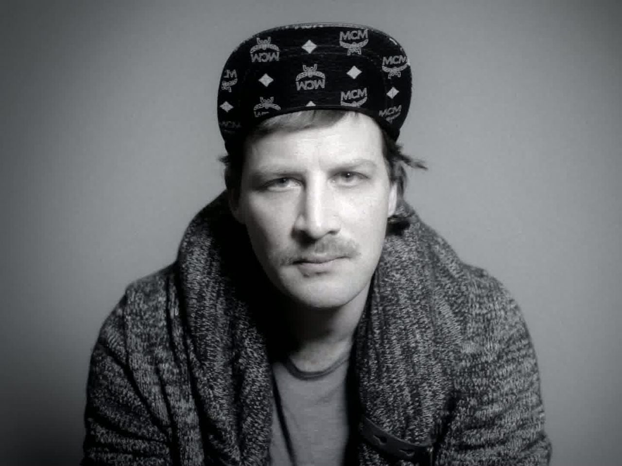 Description: A man with a hat on his head is sitting down and looking at the camera with a serious look on his face.