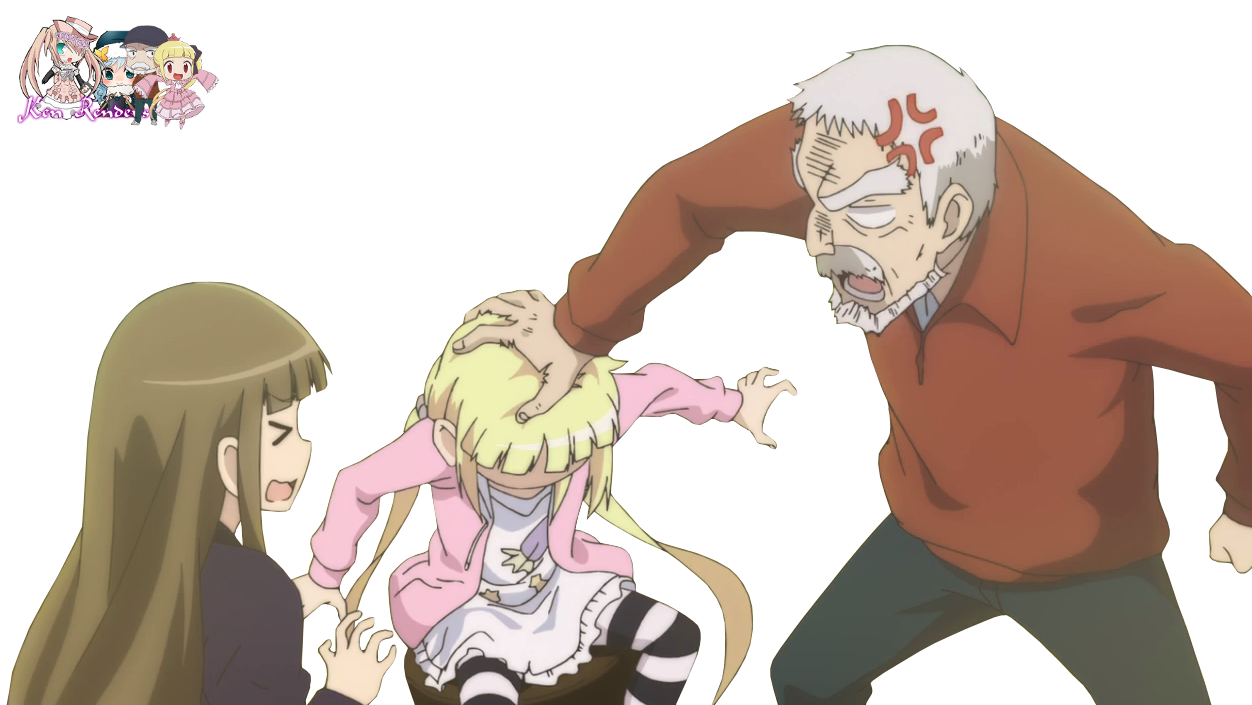 Description: A man is being held back by a woman in a pink dress and a man in a brown shirt.