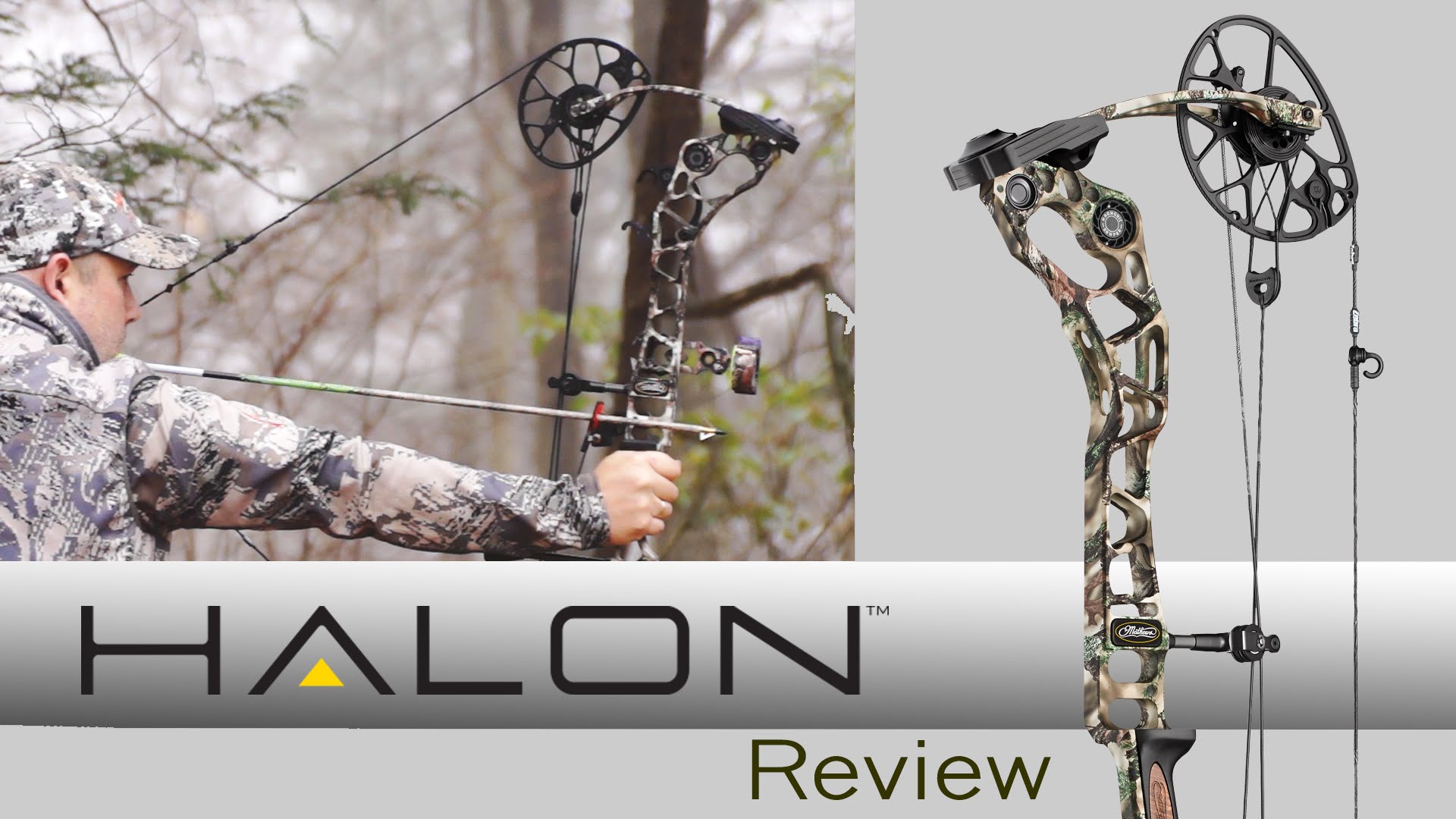Description: A man holding a bow and a bow arrow in a forest with a halon logo on it and a picture of a bow.