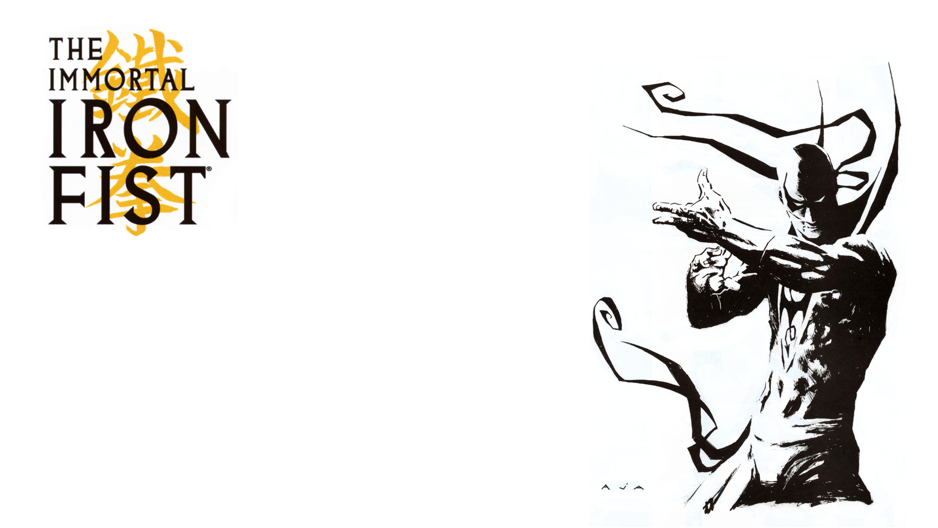 Description: A drawing of a man holding a bow and arrow in his hands with the words the immortal iron fist.