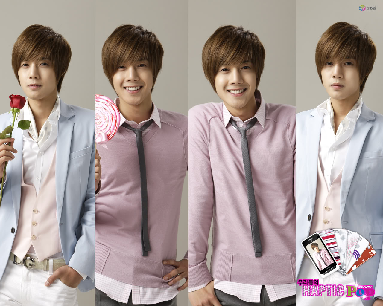 Description: A man holding a flower and a lollipop in his hand and a lollipop in his other hand.