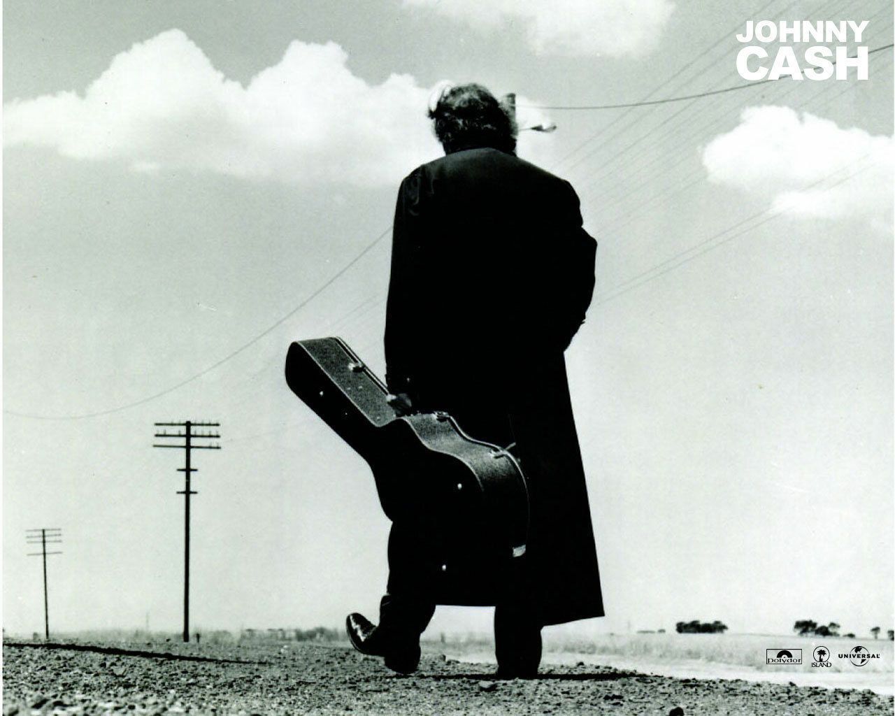 Description: A man holding a guitar in his right hand and a guitar case in his left hand.
