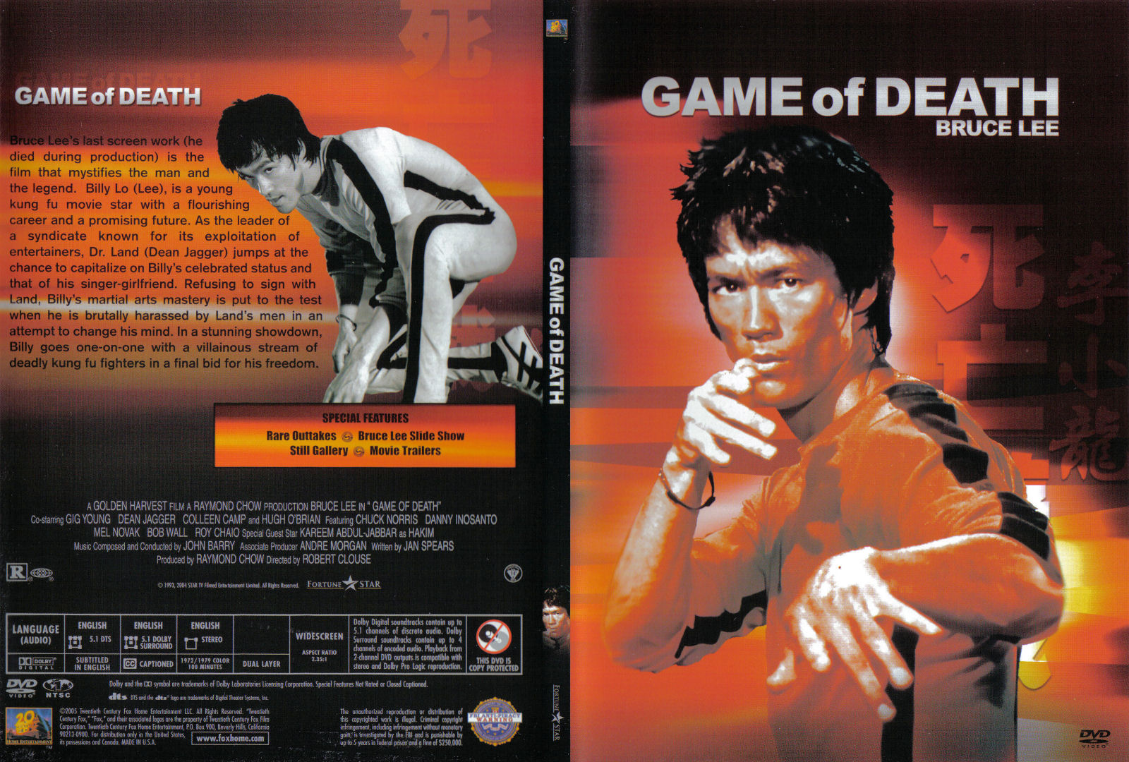 Description: A dvd cover of a man holding a gun in his right hand and a game of death in the background.