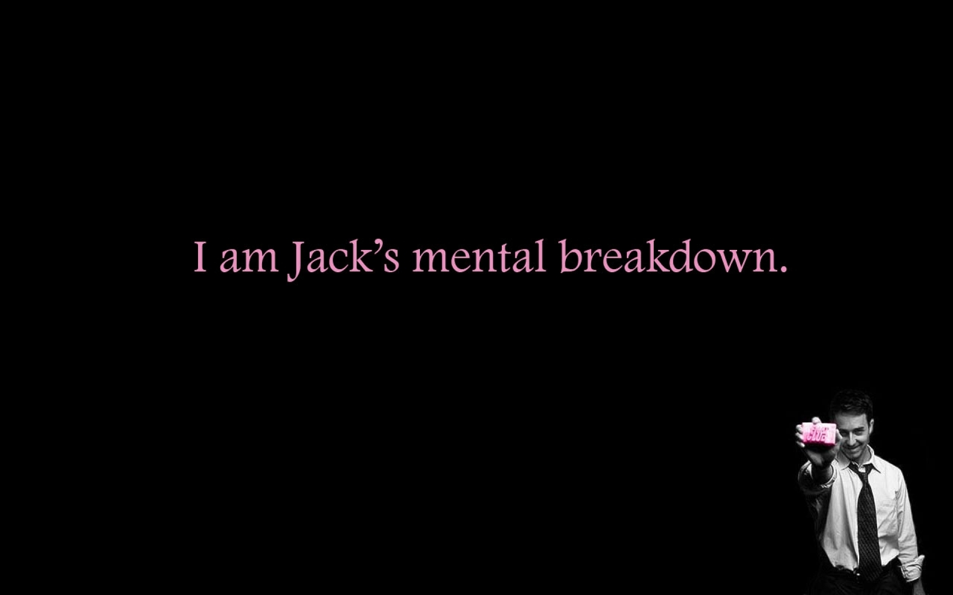Description: A man holding a pink flower in his hand with a quote on it that says i am jack's mental breakdown.