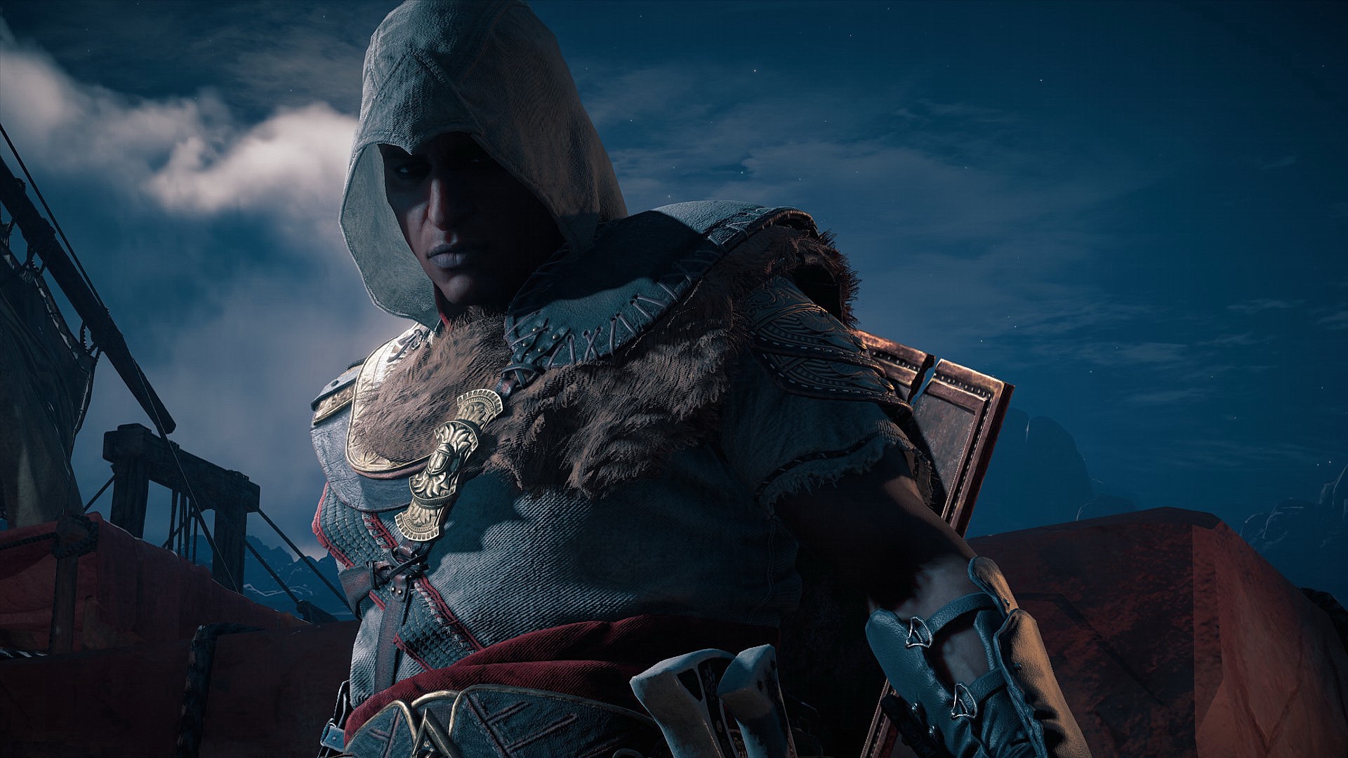 Description: A man in a hooded outfit standing in front of a building in a video game called disheveled.