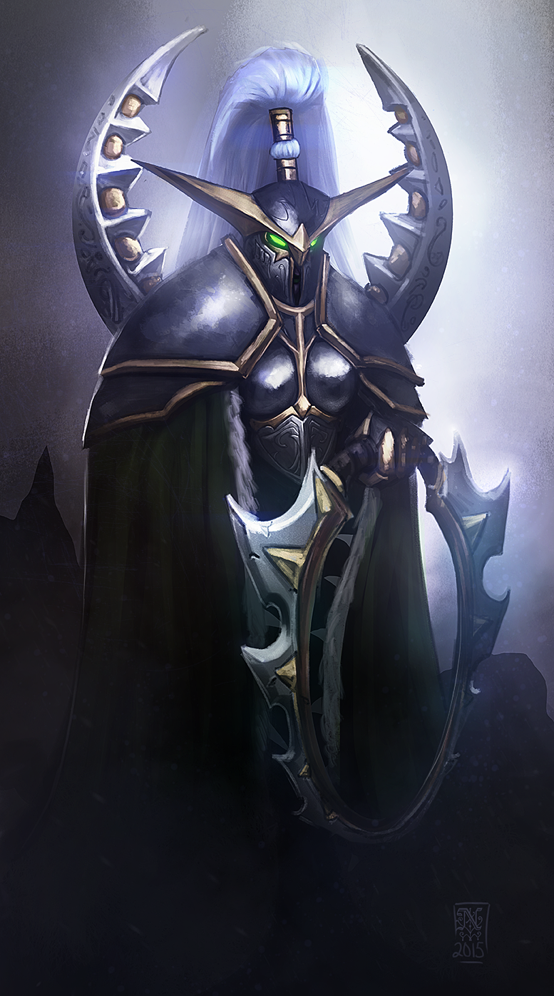 Description: A digital painting of a man with horns and armor on his face and shoulders.