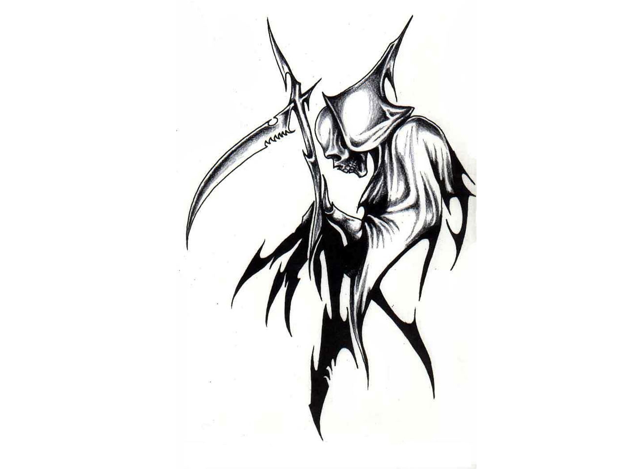 Description: A drawing of a man with a knife in his hand and a hat on his head.