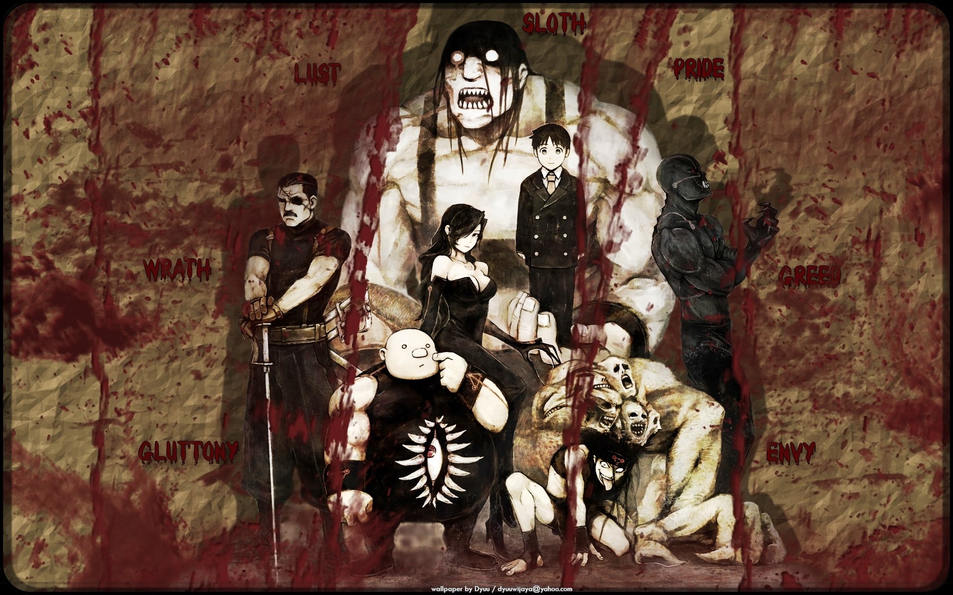 Description: A painting of a man with a knife and a bunch of people behind him with blood on the walls.