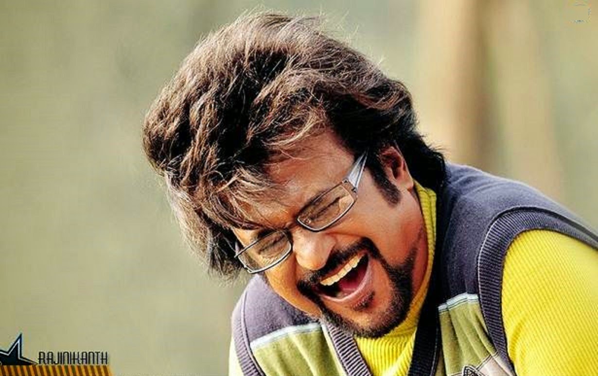 Description: A man with glasses laughing while holding a cell phone in his hand and wearing a vest and vest with a yellow shirt.
