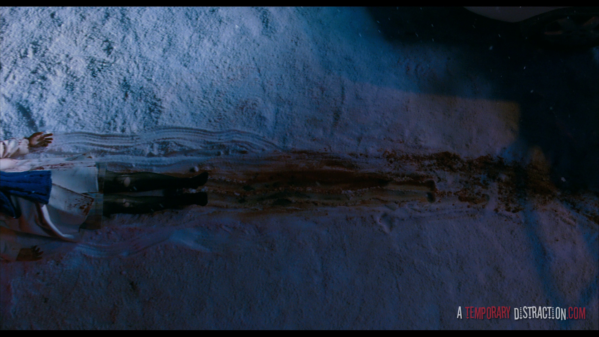 Description: A man laying on the ground in a room with a blue wall and a white wall behind him and a black and white cat.