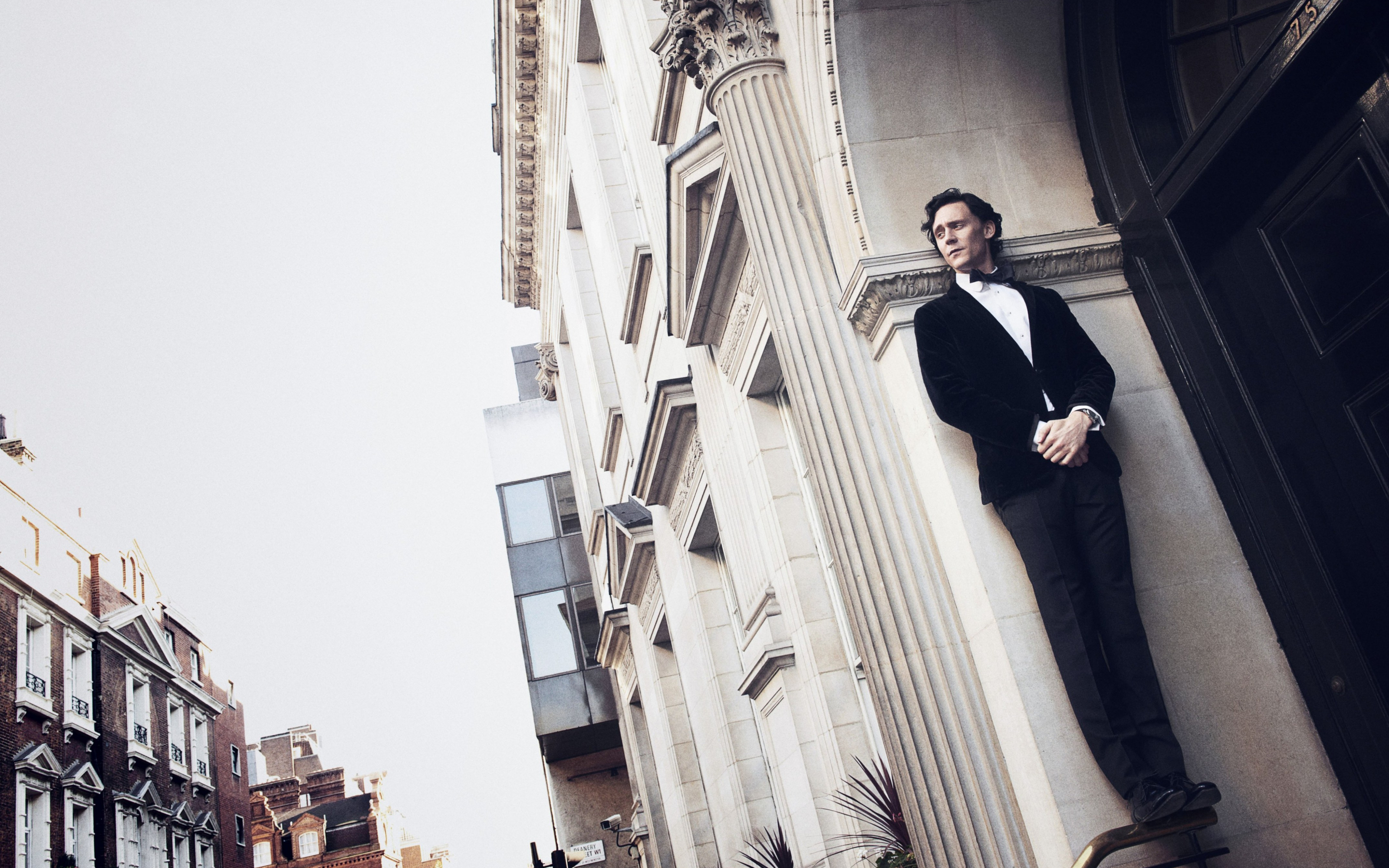 Description: A man leaning against a building with his arms crossed and his hands folded out in front of him.