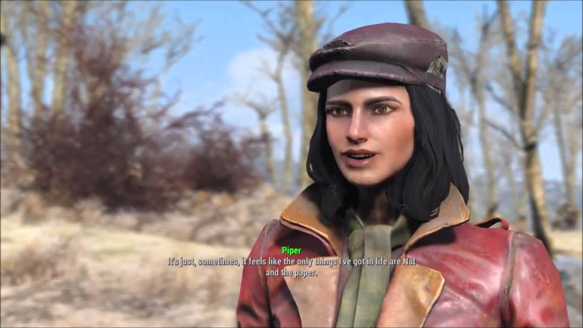 Description: A man in a leather jacket and hat in a video game with a caption in the middle of the picture.