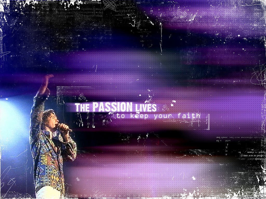Description: A man with a microphone on stage with a purple background and a purple and black background with a picture of him.