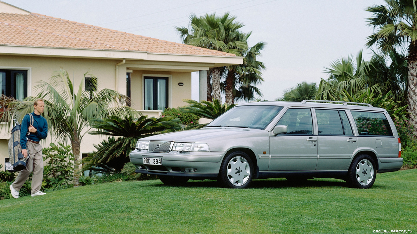 Description: A man walking past a parked car in front of a house with palm trees and a woman walking by.