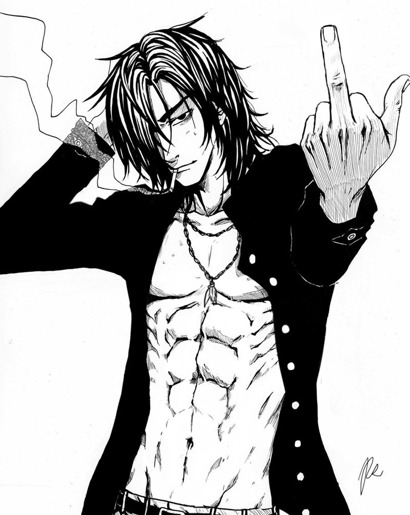 Description: A drawing of a man with a peace sign in his hand and a shirt on his chest and a shirt on his chest.