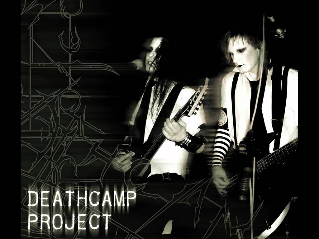 Description: A man playing a guitar and another man playing a guitar in front of him with a black and white background.