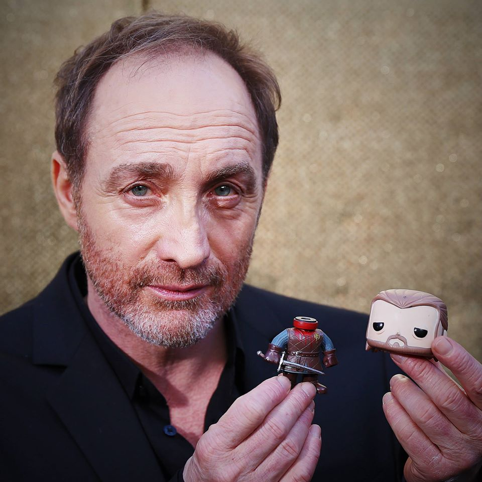 Description: A man holding a small figurine of a person with a small figure of a person holding a small figurine.
