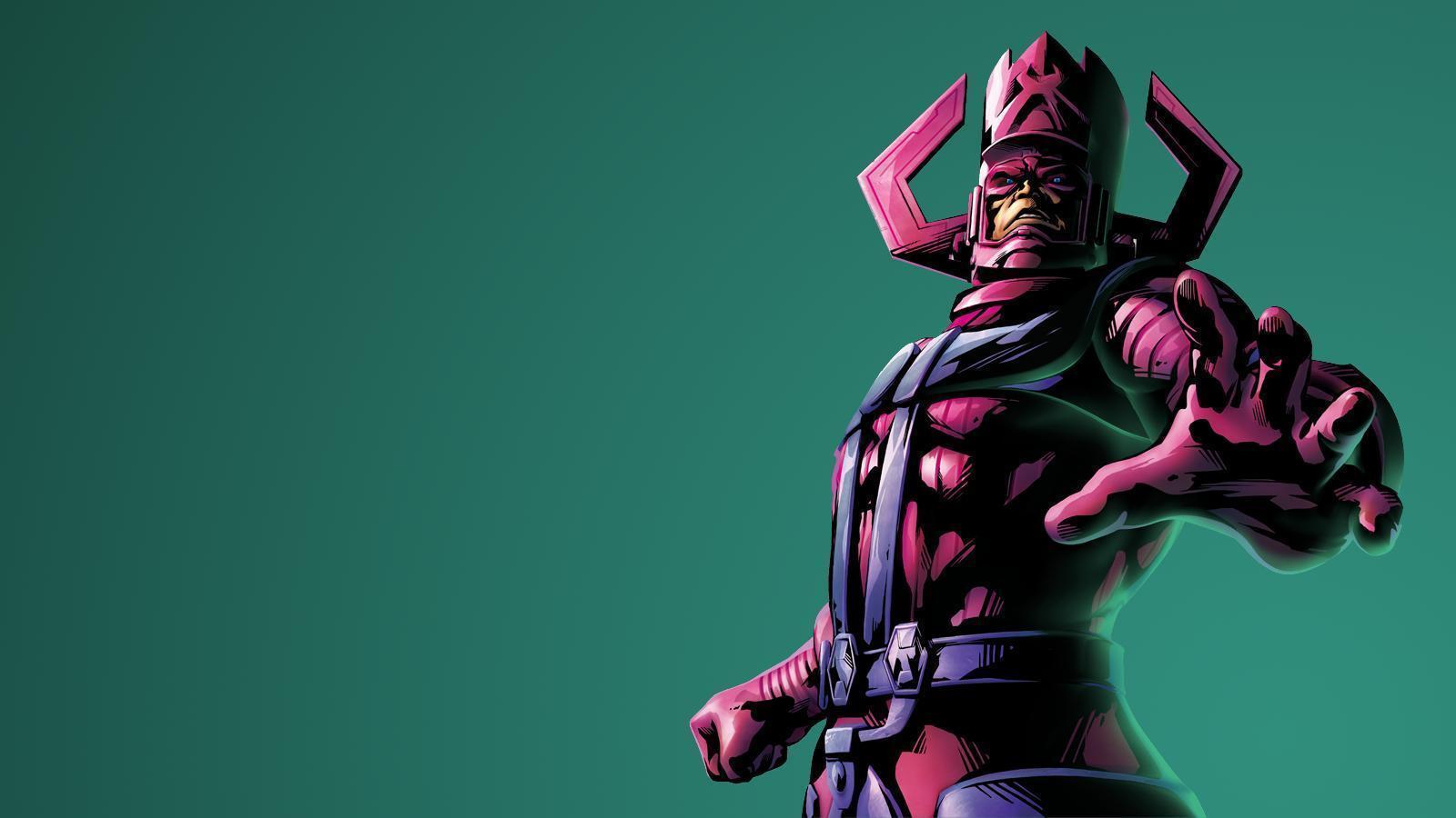 Description: A stylized image of a man in a purple suit holding a gun and a green background with a pink outline.