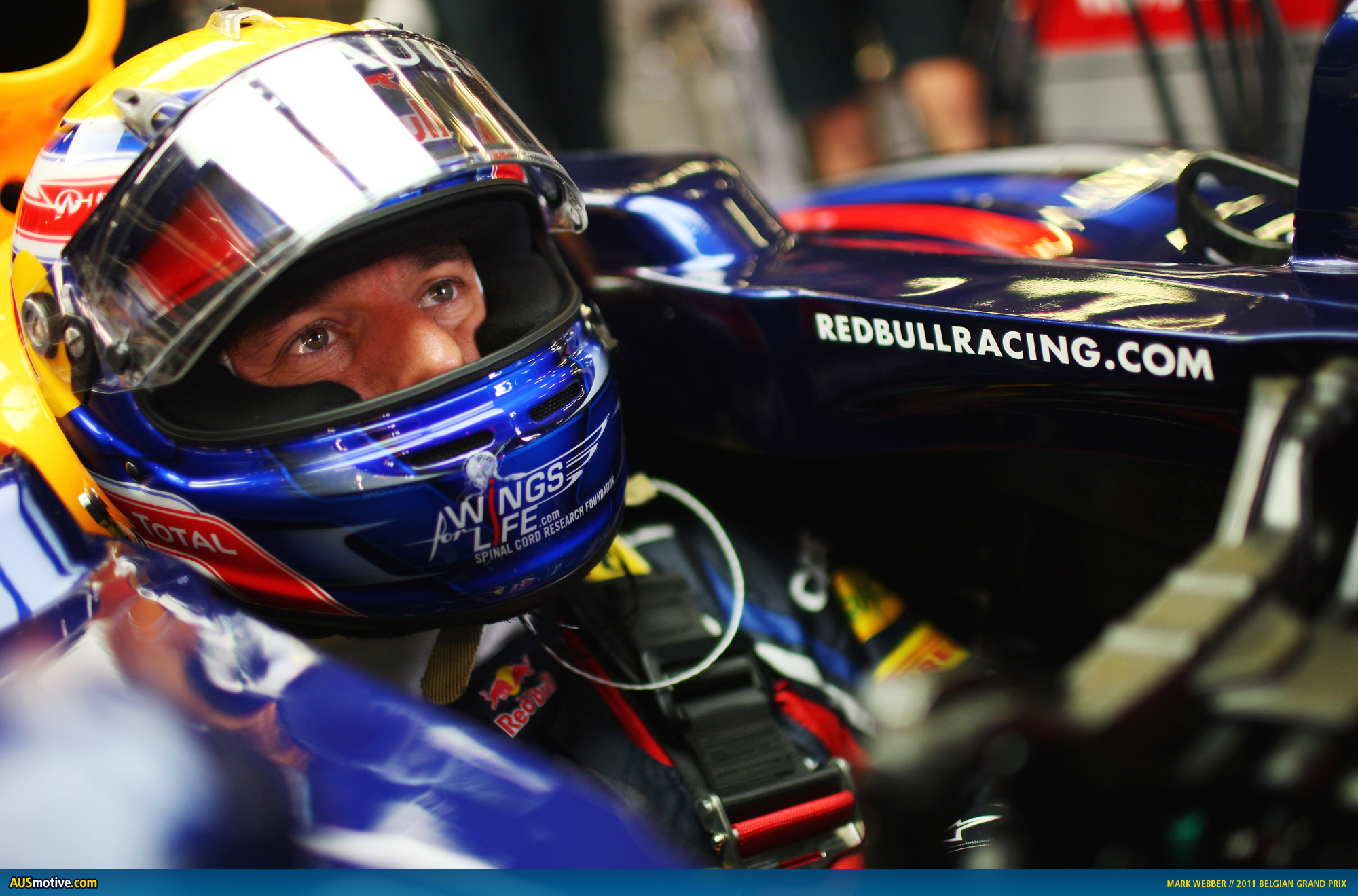 Description: A man in a racing car with a helmet on and a yellow eye patch on his face and a red bull racing logo on his helmet.