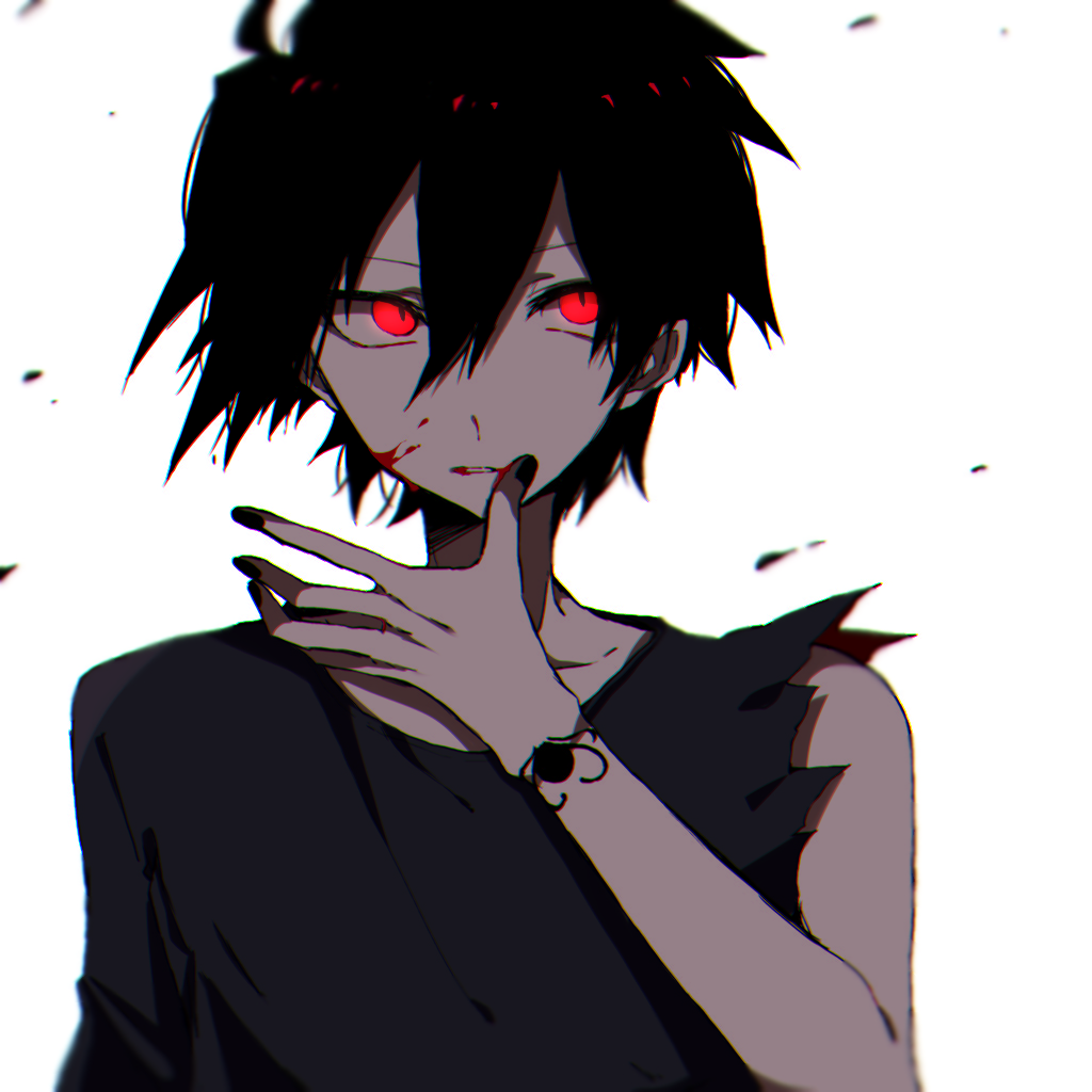 Description: A man with red eyes and a black shirt on holding his hand to his face with his hand to his mouth.