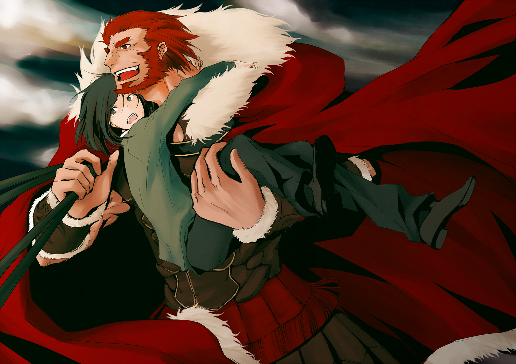 Description: A man with red hair and a beard holding a sword in his hands and a red cape on his shoulders.