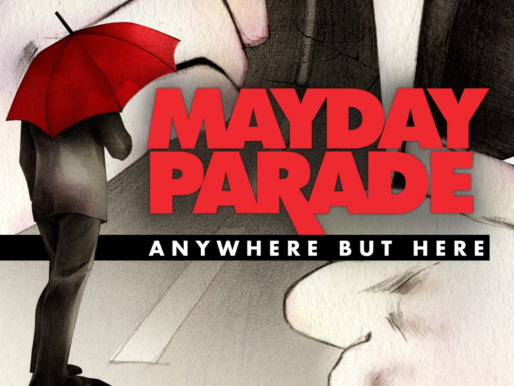 Description: A man with a red umbrella standing in front of a woman with a red umbrella in a movie poster.