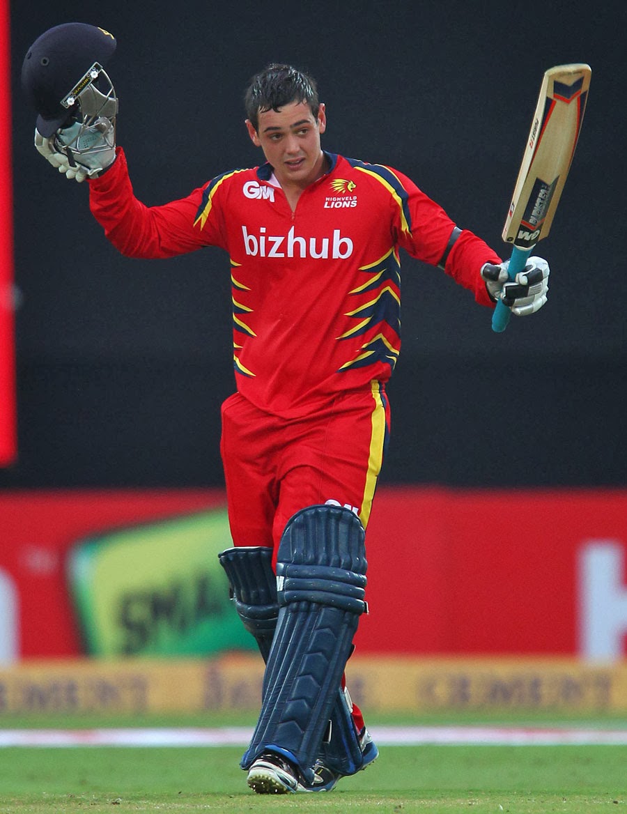 Description: A man in red and yellow uniform holding a bat and glove in his hand and walking on a field.