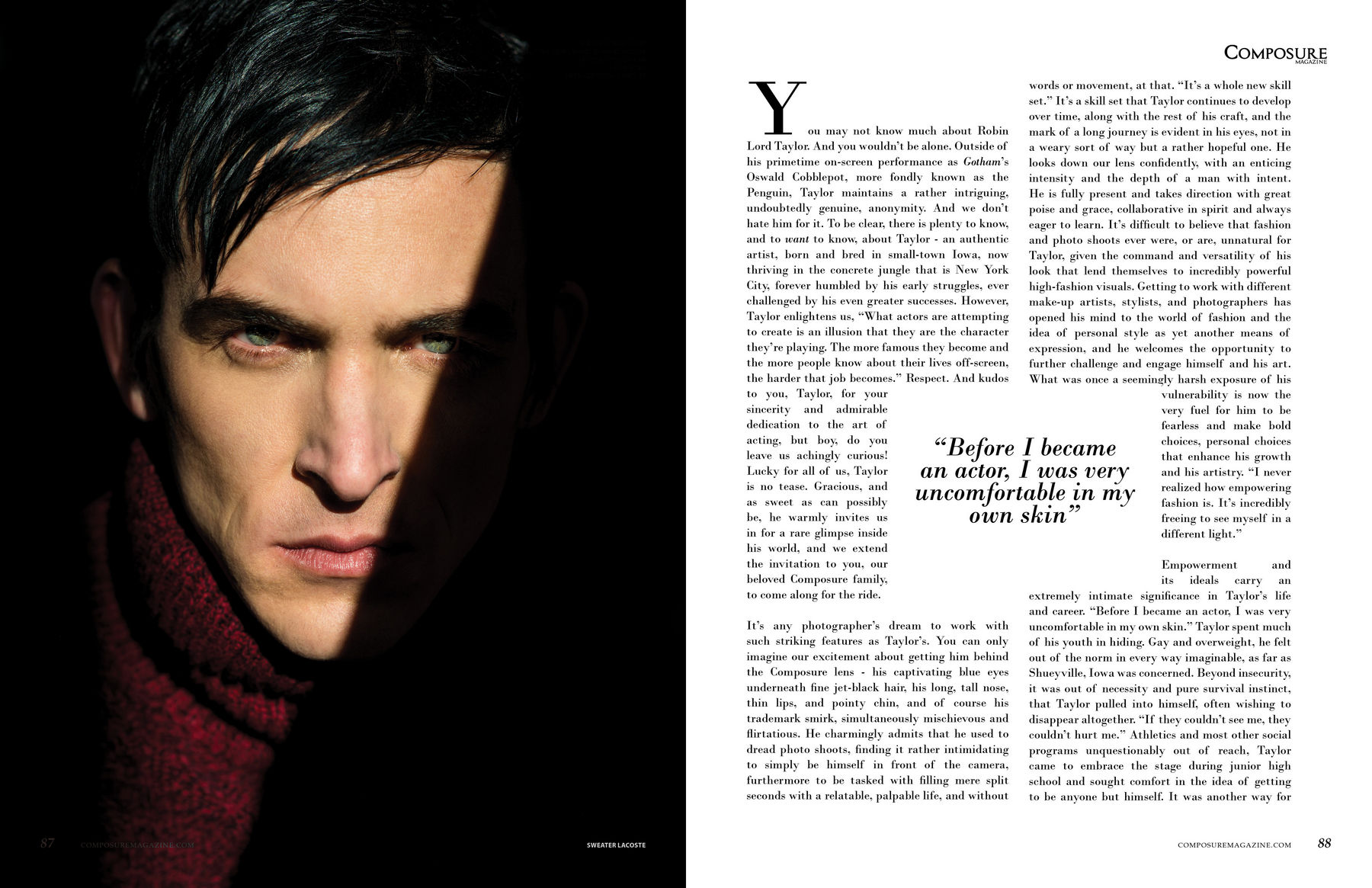 Description: A man with a scarf on his neck and a book page with a photo of him in the background.
