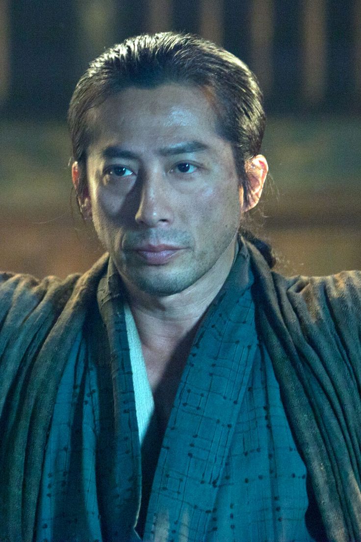 Description: A man with a scarf around his neck looking at the camera with a serious look on his face and shoulders.