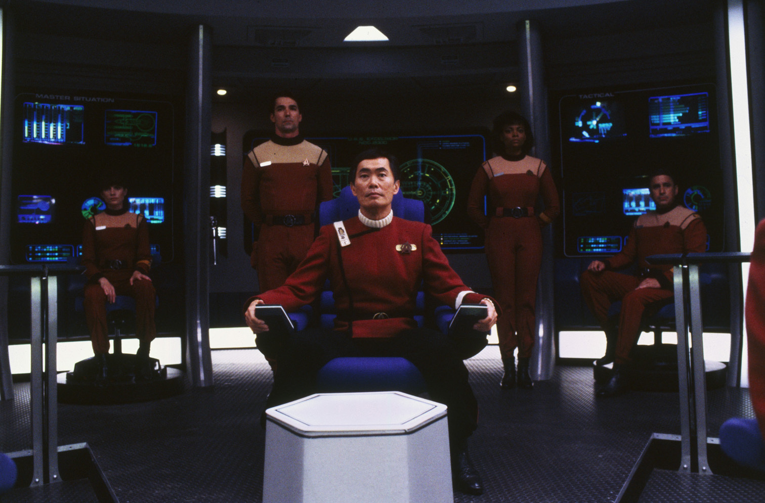 Description: A man sitting in a chair in a room with other men in red uniforms in the background.