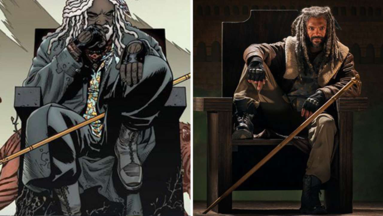 Description: A man sitting on a chair next to a drawing of a man with dreadlocks on his head.