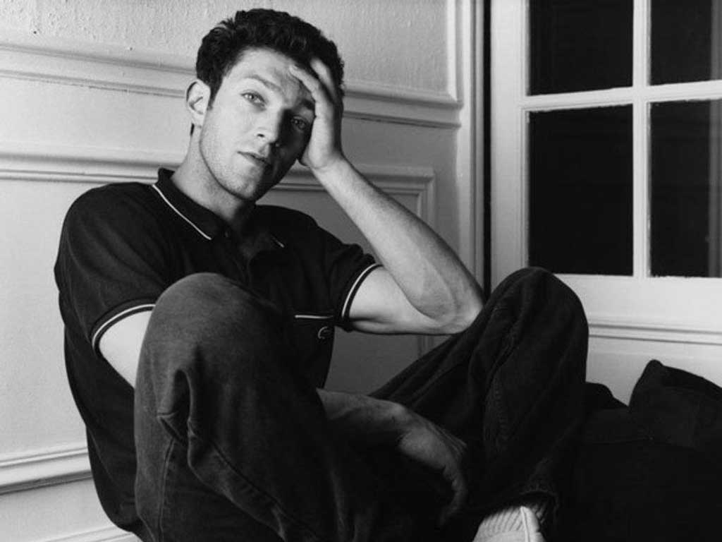 Description: A man sitting on the floor with his hands on his head and his hands on his head.
