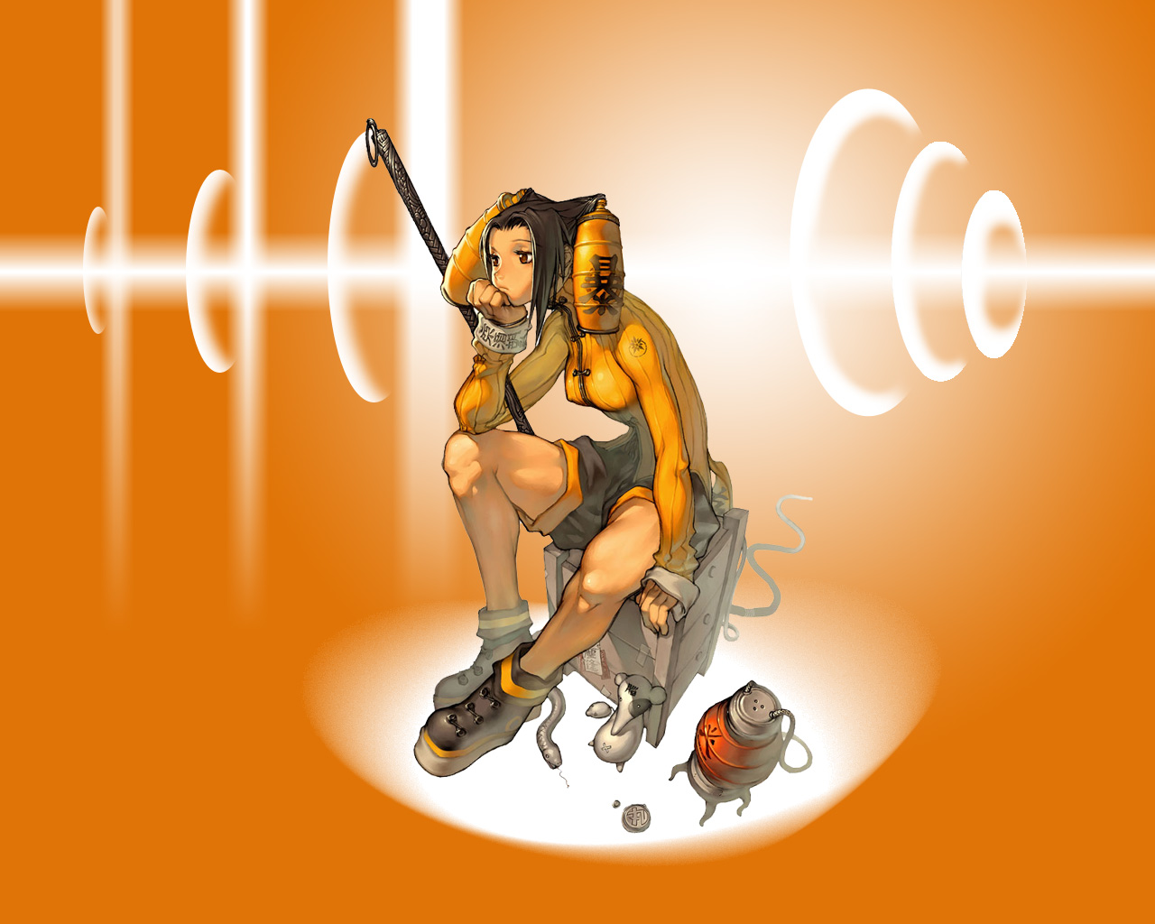 Description: A man sitting on a stool with a baseball bat in his hand and a mouse in his other hand.