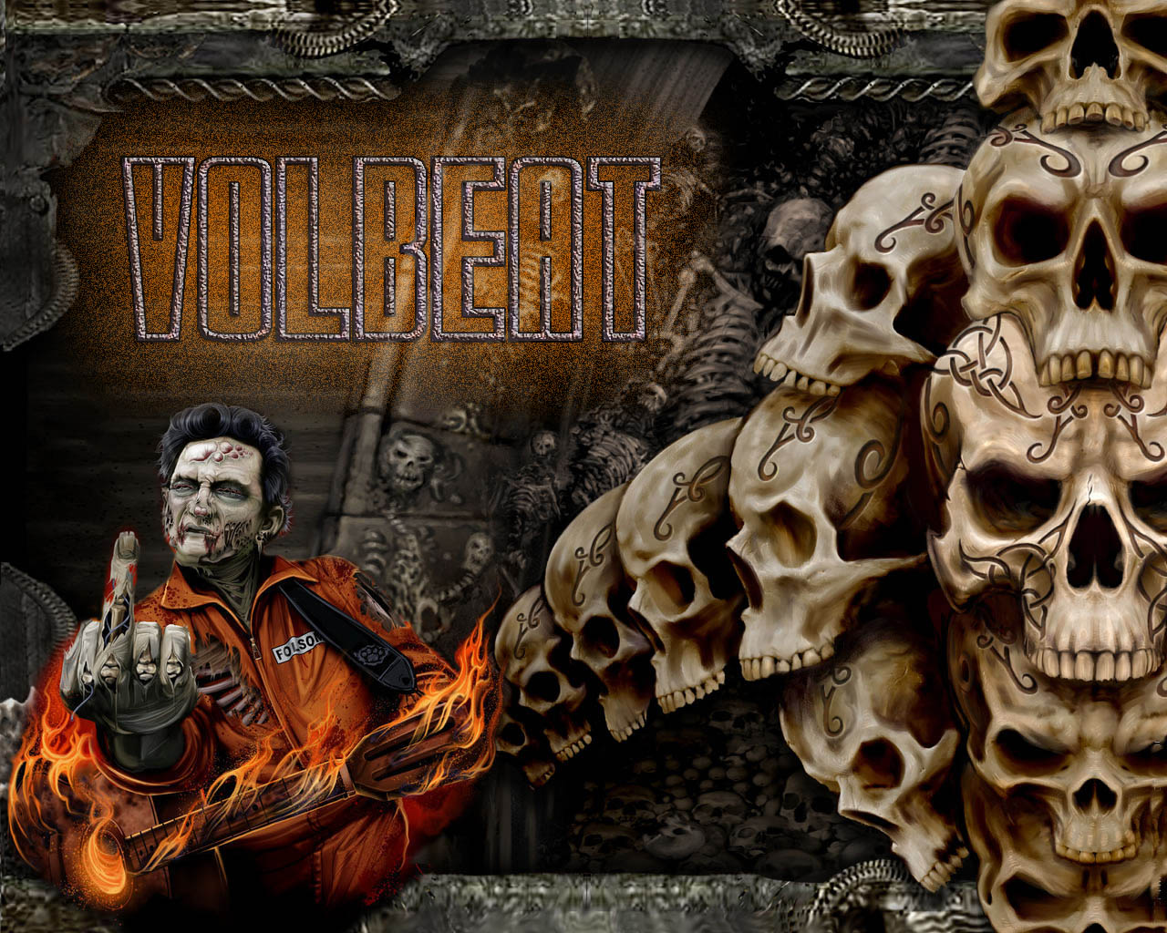 Description: A man with a skull and a flamey skull on his chest and a picture of a skeleton with a flamey skull on his chest.