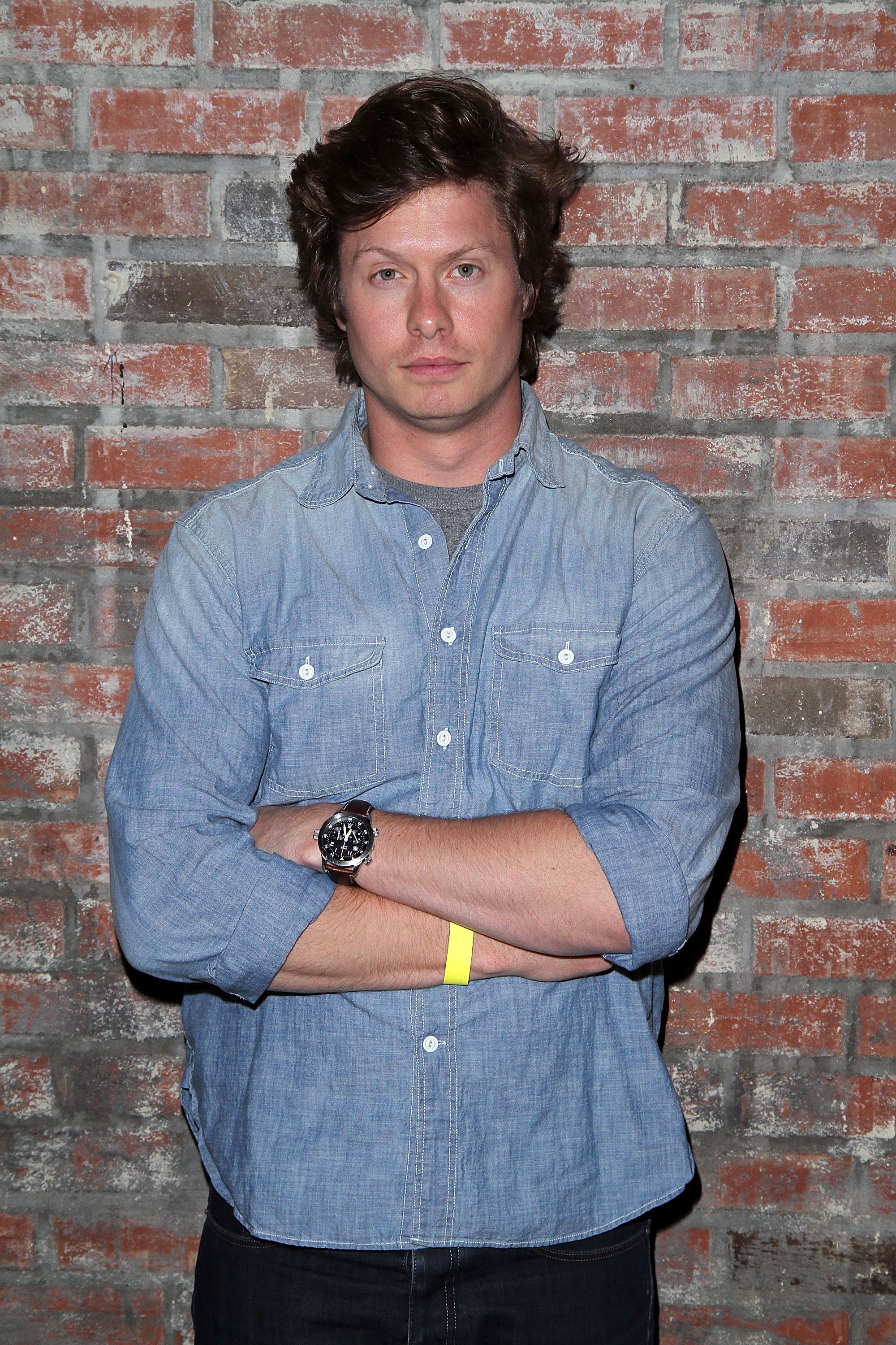 Description: A man standing in front of a brick wall with his arms crossed and his arms crossed in front of him.