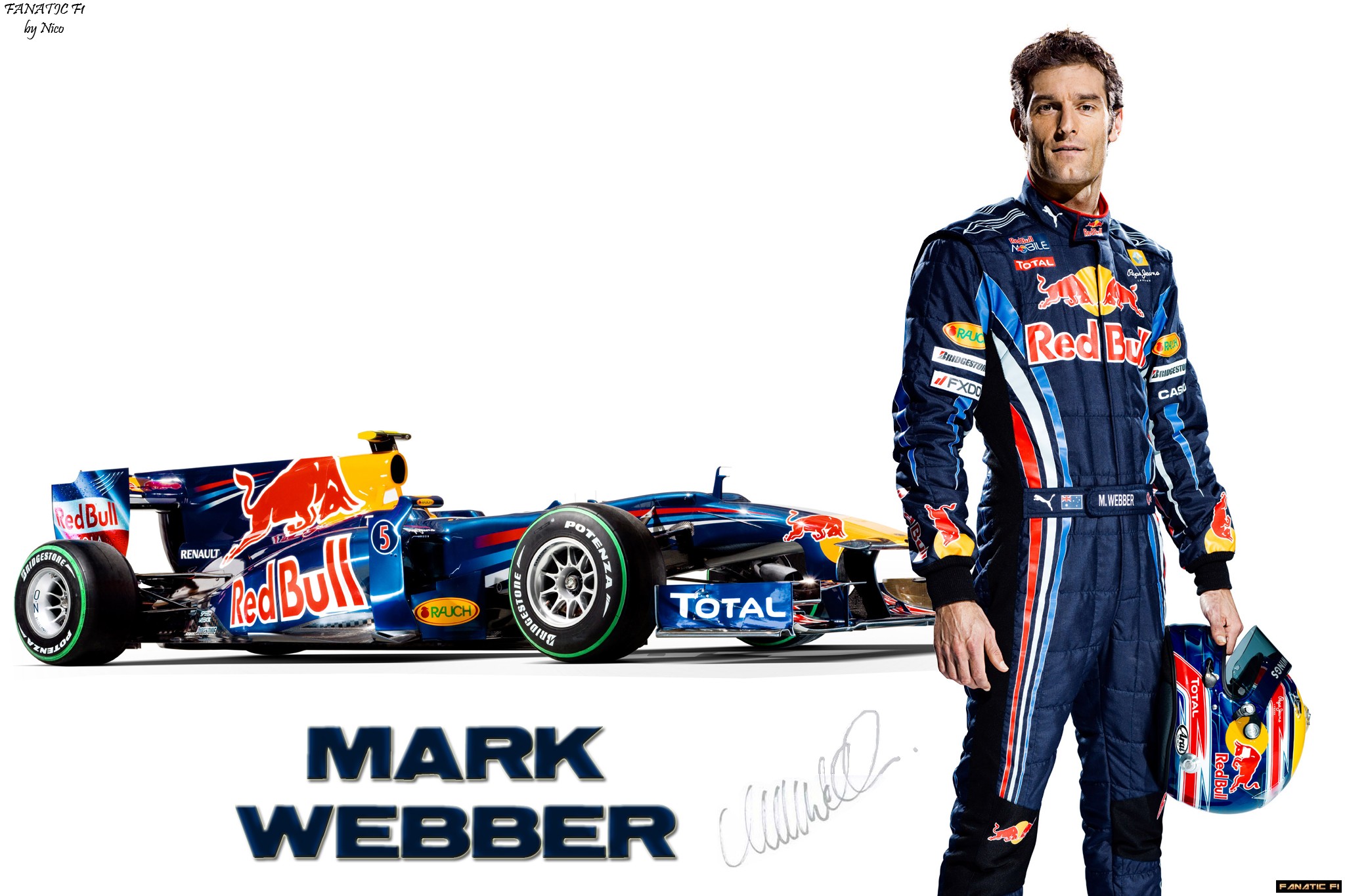 Description: A man standing next to a red bull racing car with a helmet on his head and a helmet on his hand.