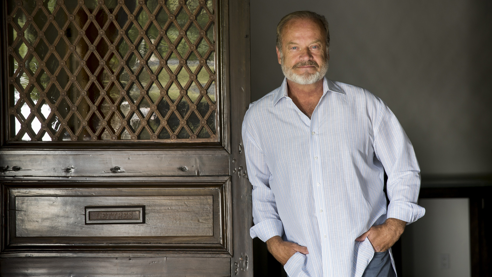 Description: A man standing in front of a wooden door with his hands on his hips and his hands on his hips.