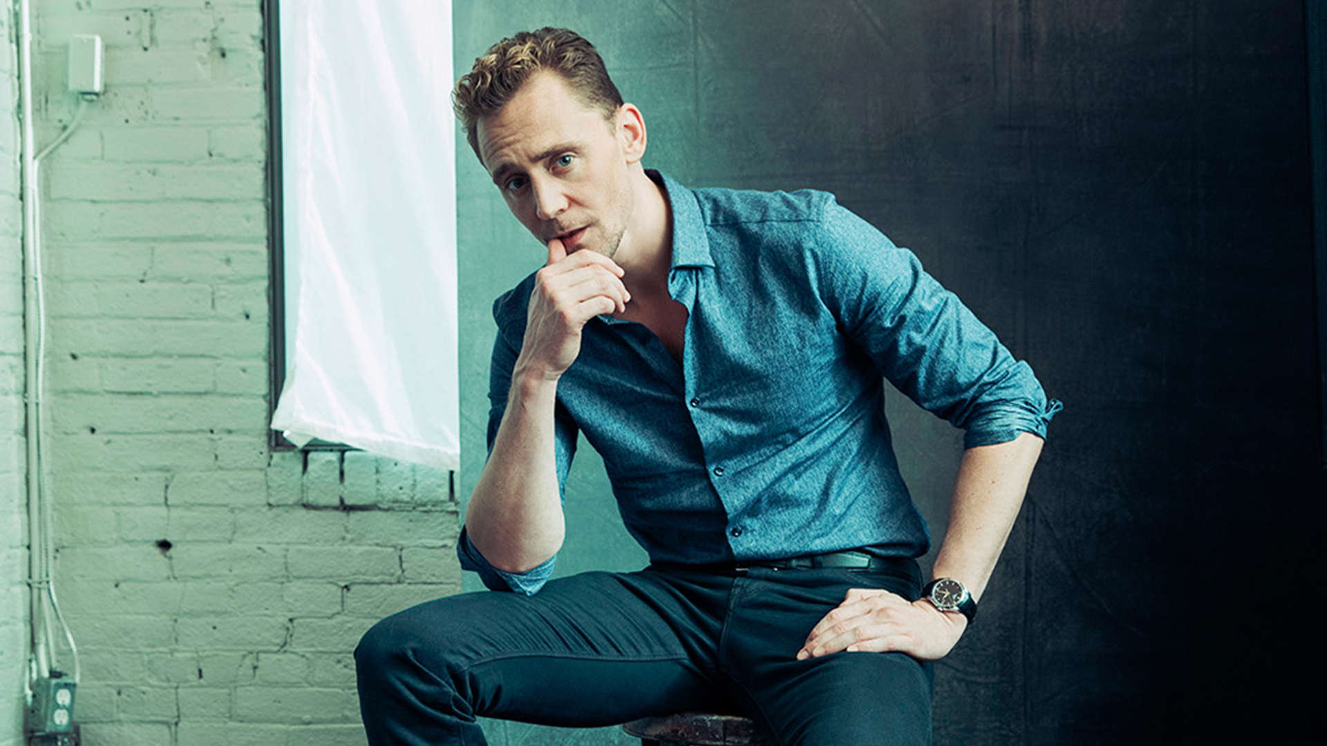 Description: A man sitting on a stool in a room with a brick wall and a window behind him.